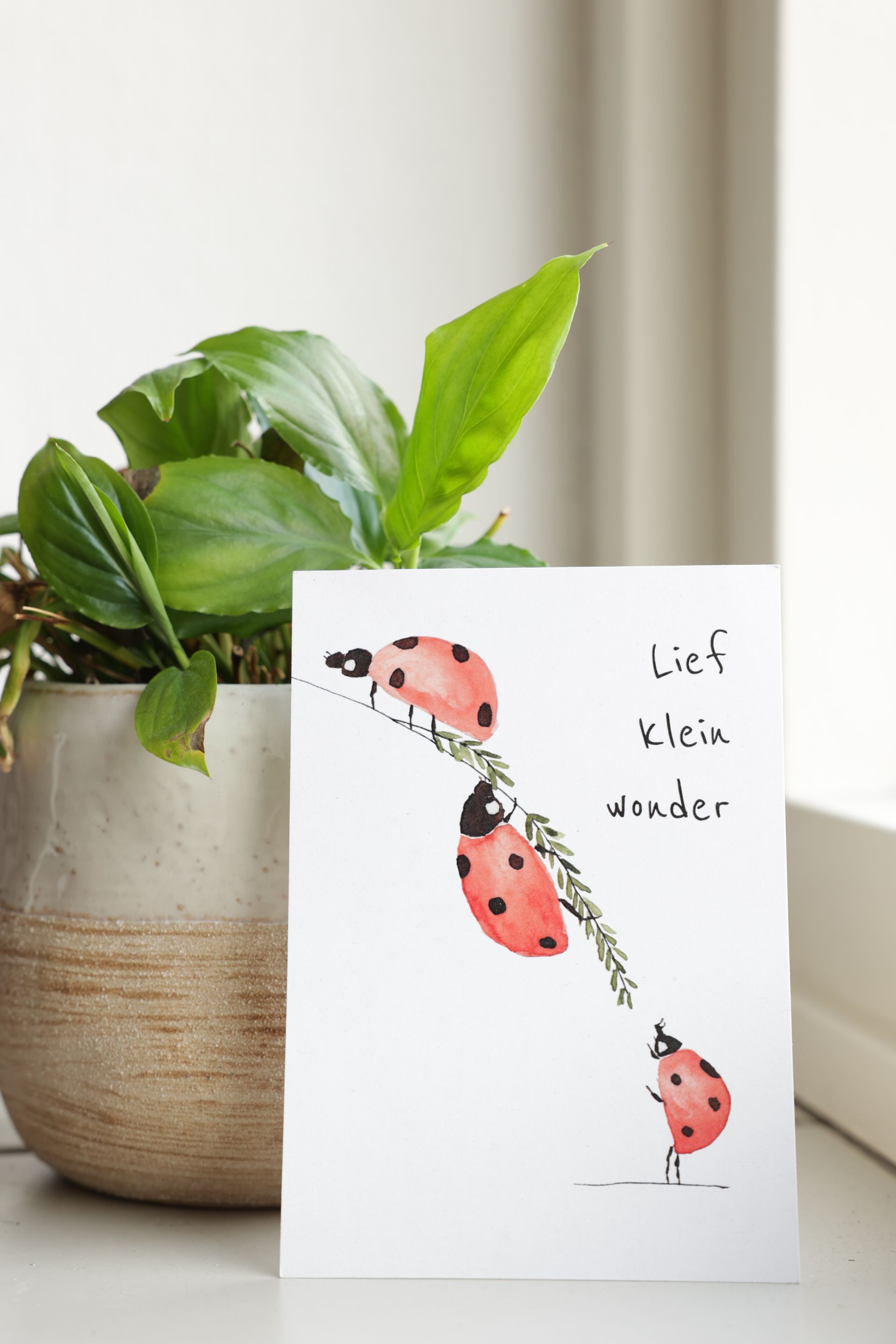 Ik ben Christien, ontwerper van Kaarten van Hoop. Op mijn zelf ontworpen kaarten staan prachtige Bijbelteksten met bijpassende illustraties. Maar ook felicitaties, bedank- en beterschapskaarten zijn verkrijgbaar. En zoek je het beste van beide? Kijk dan eens bij mijn kaartensets!